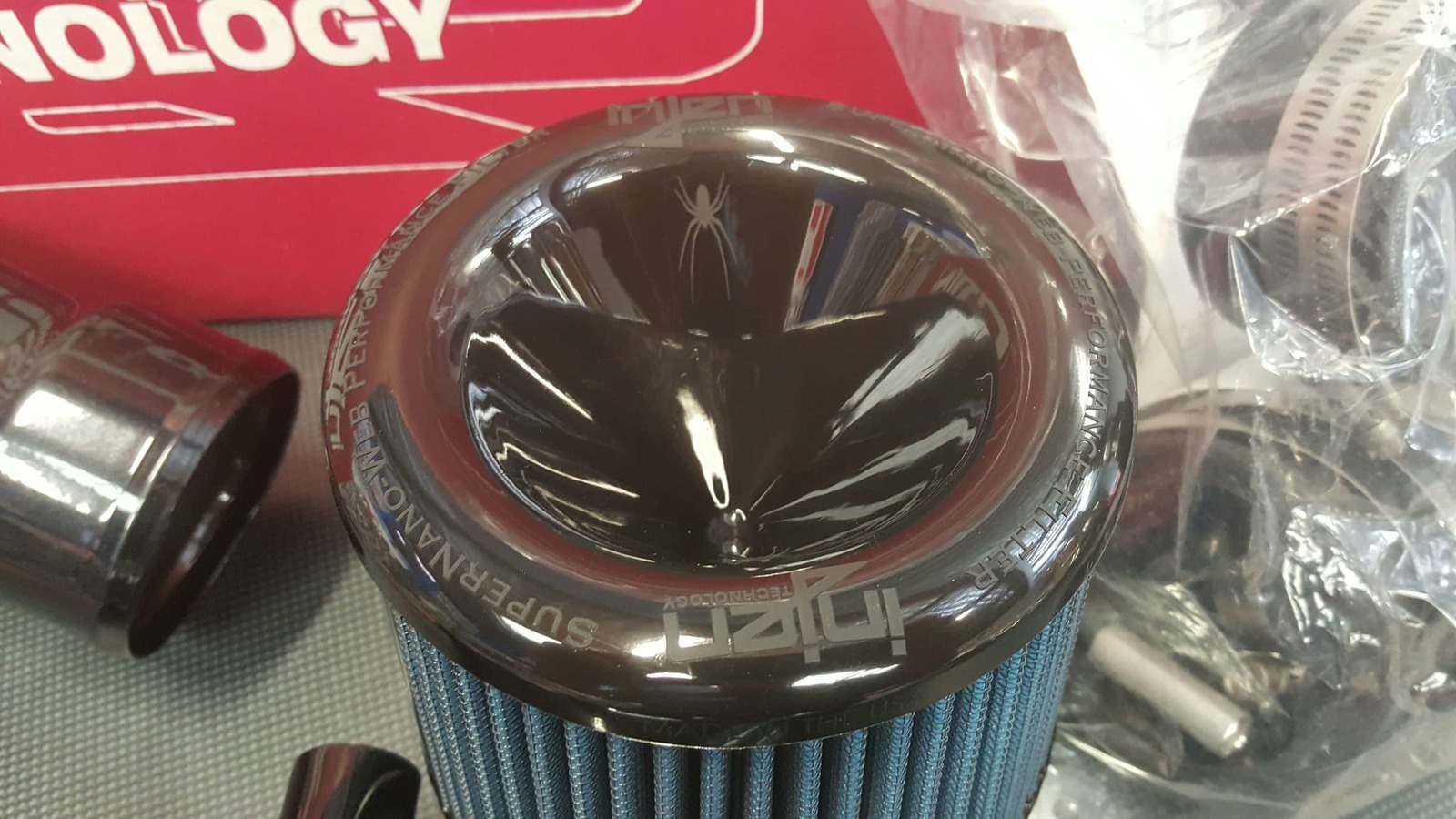 • Black aluminium pipes with Injen filter and joiners.