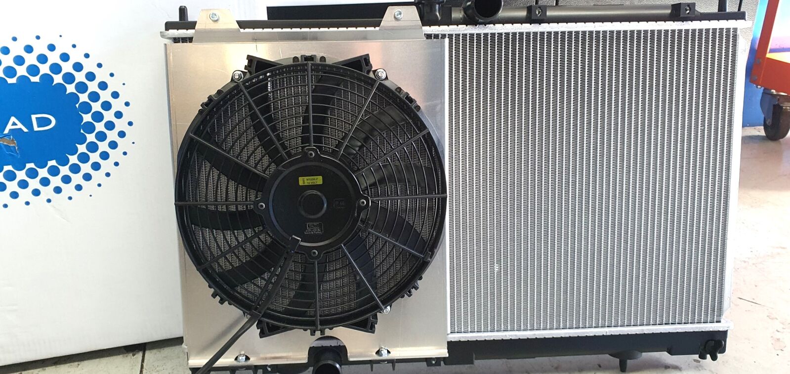 • Maradyne Hi Flow slim line fan with shroud, flow 1155CFM.